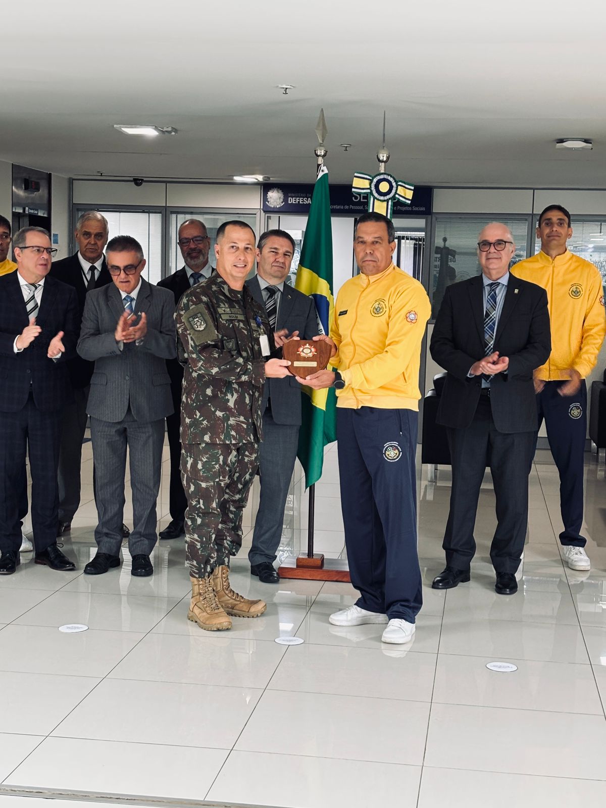 The event gathered senior civil and military authorities, including Dr Idervânio da Silva Costa, Secretary of Personnel, Health, Sports and Social Projects (SEPESD); Dr Oswaldo Gomes dos Reis Junior, Assistant Secretary of SEPESD; Lieutenant General Paulo Afonso Bruno de Melo, President of the CDMB and Director of the Military Sports Department; and Colonel Nilton Gomes Rolim Filho, President of the International Military Sports Council (CISM).