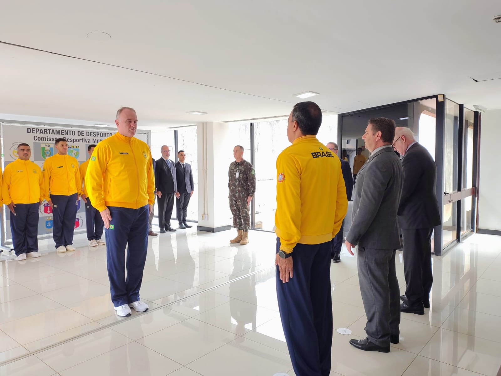 The event gathered senior civil and military authorities, including Dr Idervânio da Silva Costa, Secretary of Personnel, Health, Sports and Social Projects (SEPESD); Dr Oswaldo Gomes dos Reis Junior, Assistant Secretary of SEPESD; Lieutenant General Paulo Afonso Bruno de Melo, President of the CDMB and Director of the Military Sports Department; and Colonel Nilton Gomes Rolim Filho, President of the International Military Sports Council (CISM).
